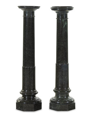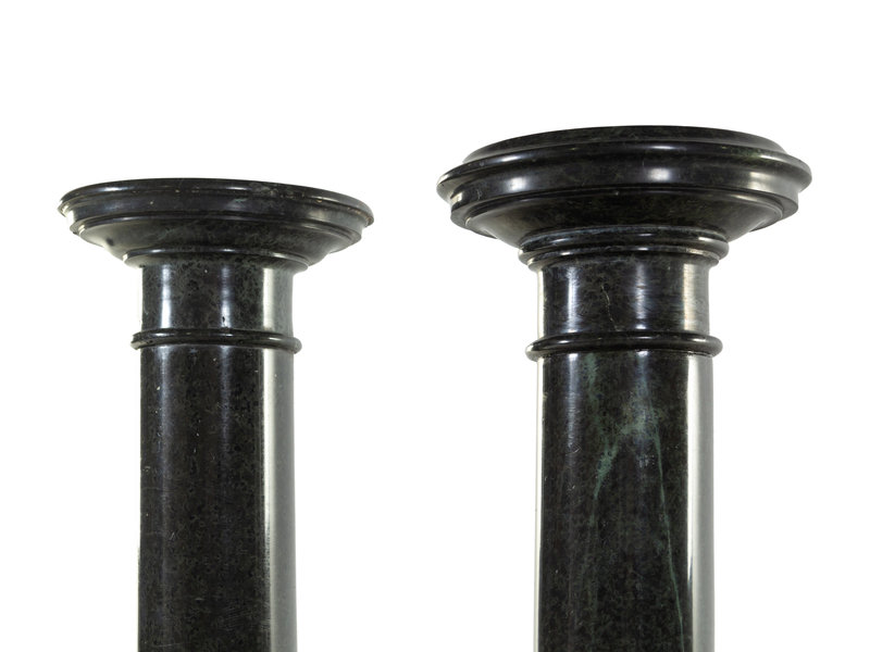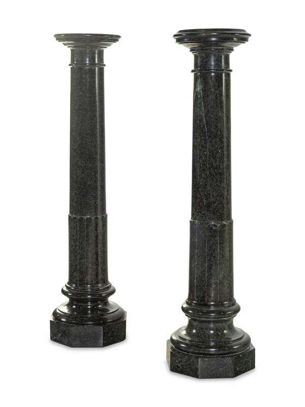 A Pair of Neoclassical Carved Verde Antico Marble Pedestals
