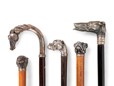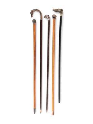 Five Silver and Silvered-Metal Mounted Zoomorphic Canes and Walking Sticks