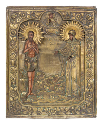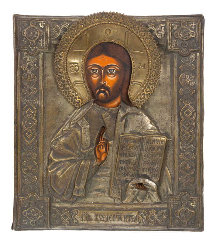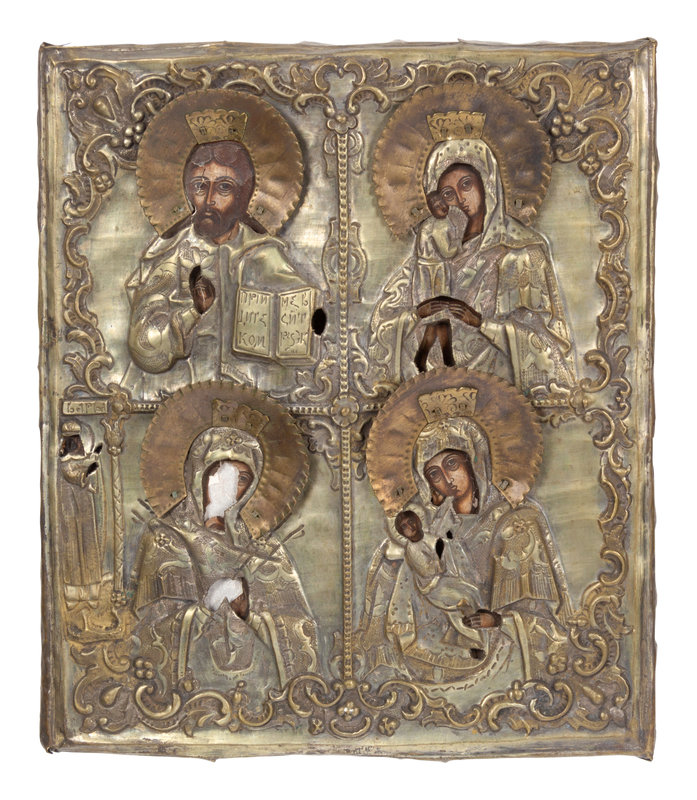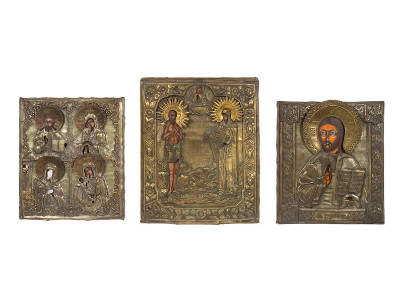 Three Russian Brass Oklad Mounted Icons