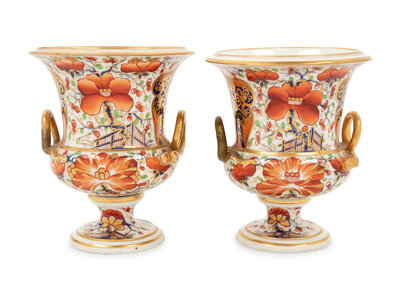 A Pair of Derby Porcelain Urns