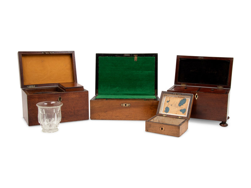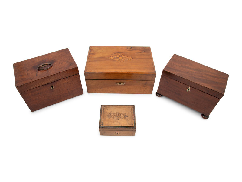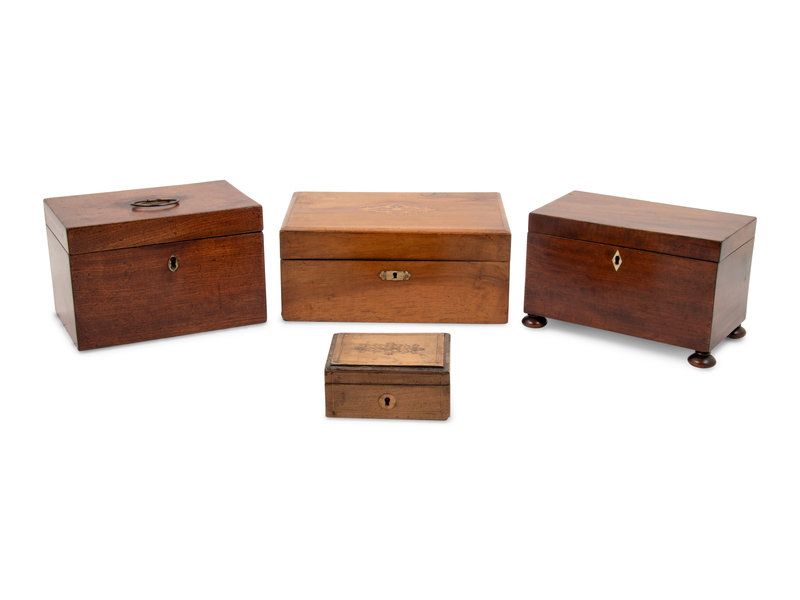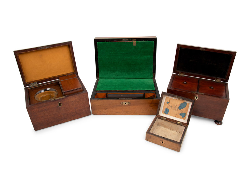 A Group of Three Tea Caddies and a Lap Desk