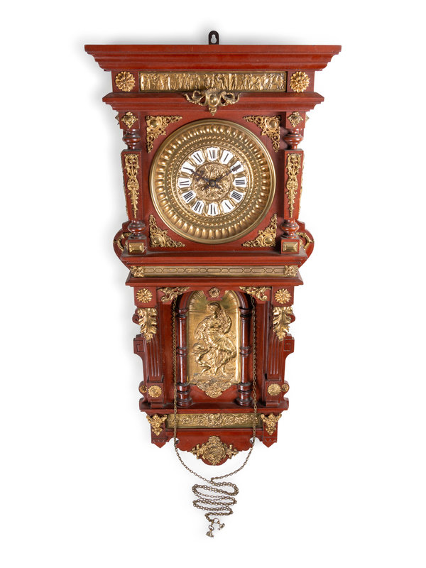 An Ansonia Hanging Antique Gilt Metal Mounted Wall Clock