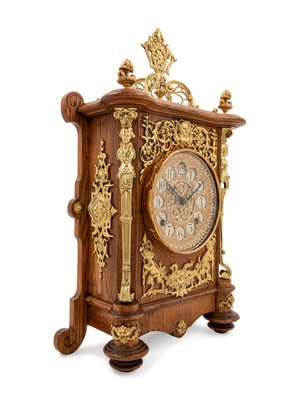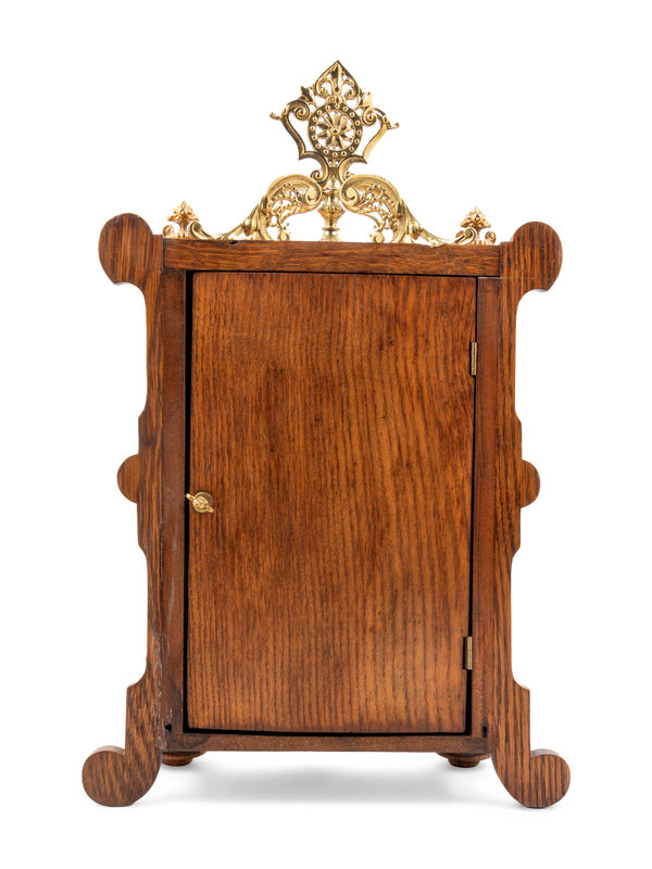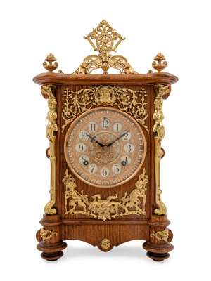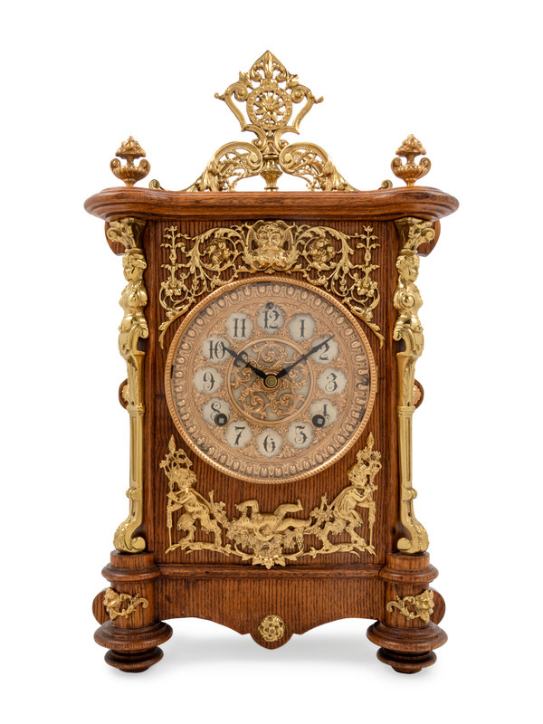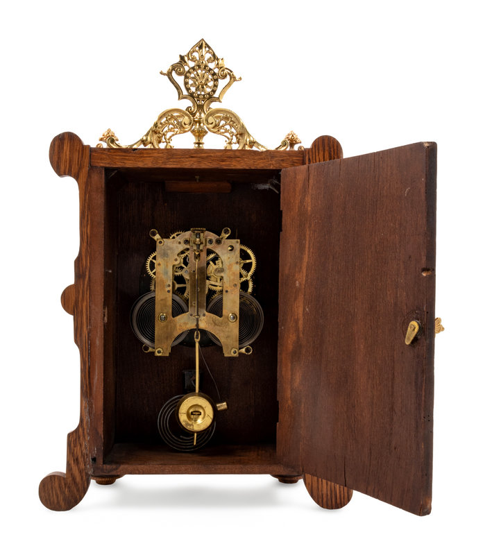 An Ansonia Cabinet B Gilt Metal Mounted Oak Shelf Clock