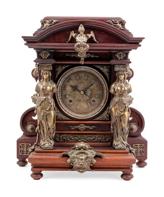 An Ansonia Senator Gilt Metal Mounted Mahogany Mantel Clock