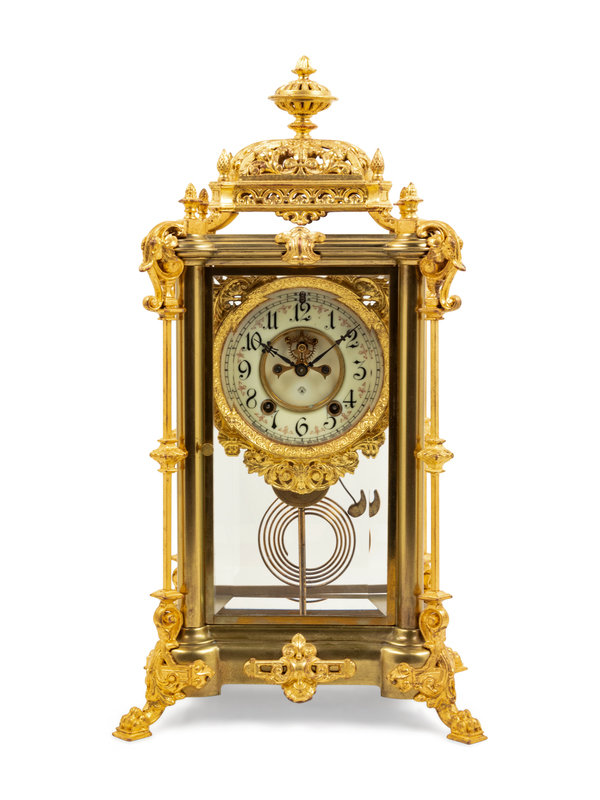 An Ansonia Excelsior Crystal Gilt Metal Regulator Clock