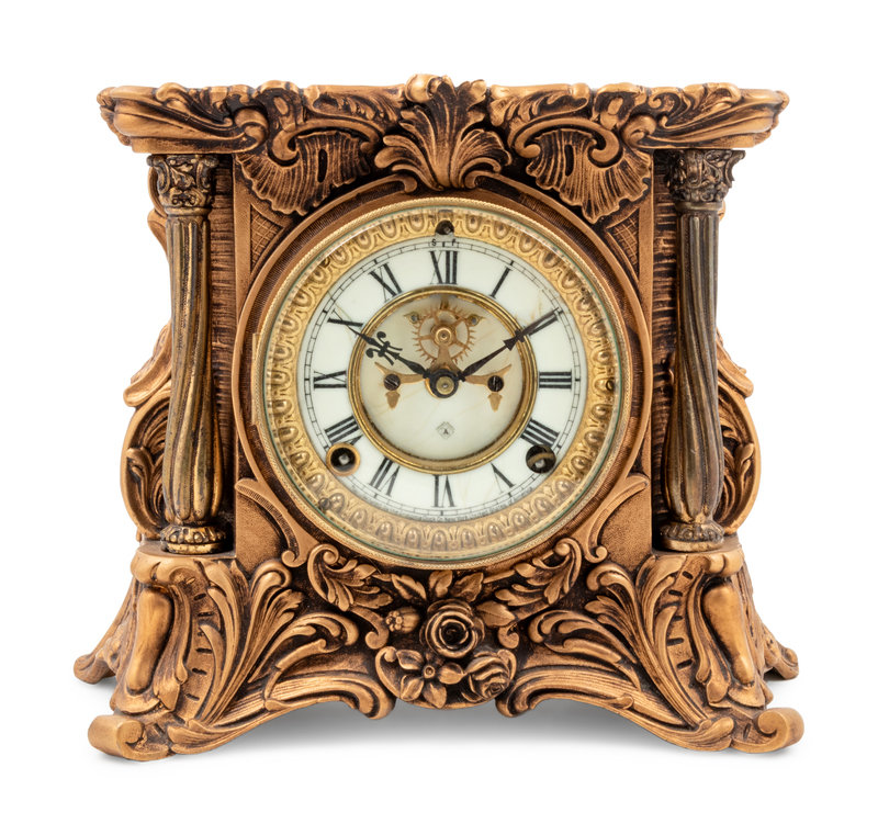 An Ansonia Minerva Gilt Metal Mantel Clock
