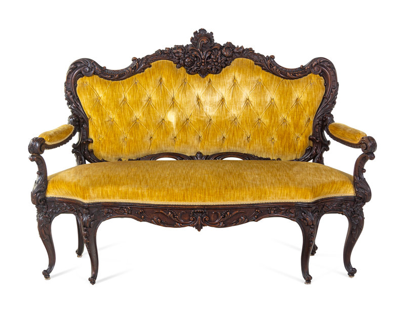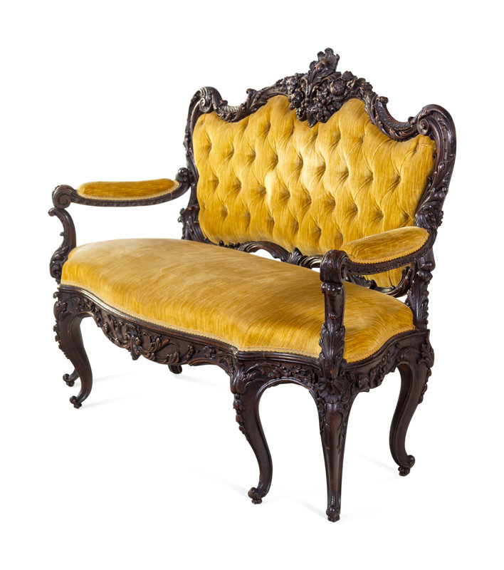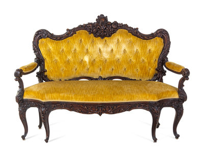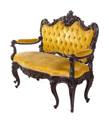 A Rococo Revival Carved Walnut Settee