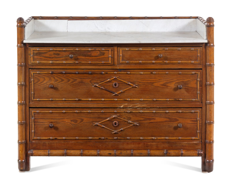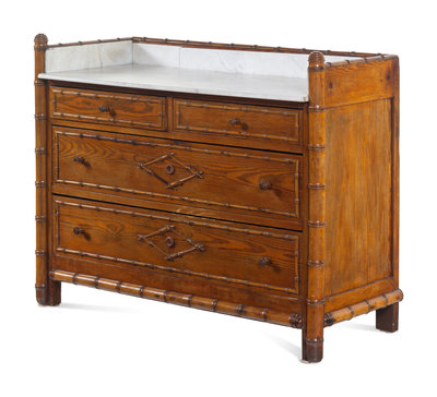 A Victorian Bamboo-Carved Pine Marble-Top Chest of Drawers