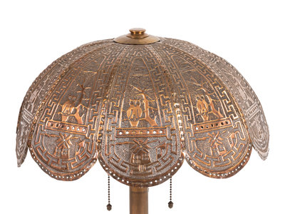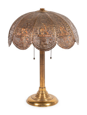 An American Pierced Brass Owl Lamp