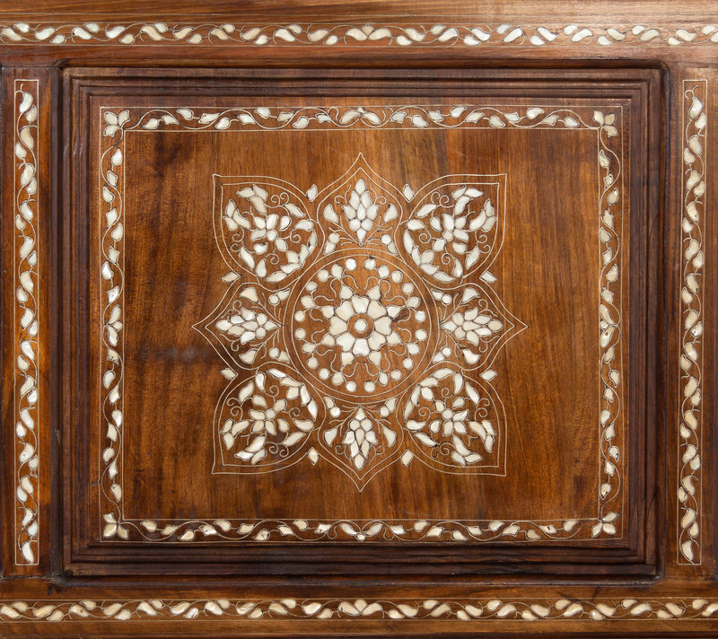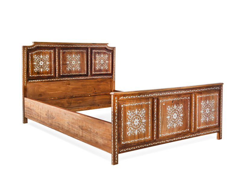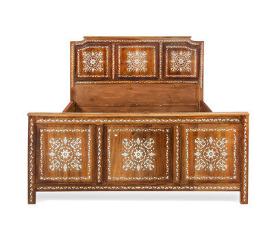 A Syrian Mother-of-Pearl Inlaid Walnut Bed