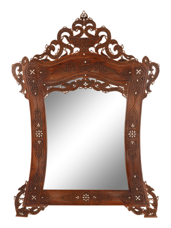 A Pair of Syrian Mother-of-Pearl Inlaid Walnut Mirrors