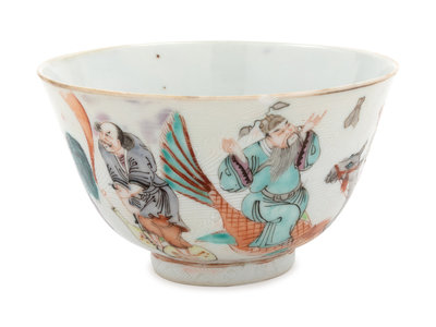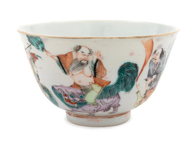 A Famille Rose 'Eight Immortals' Incised and Painted Porcelain Bowl