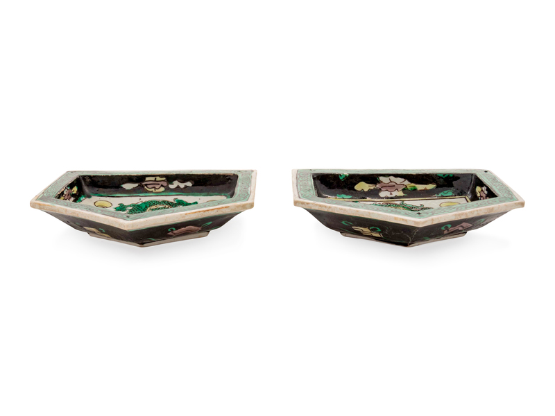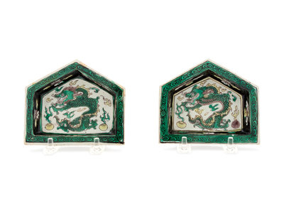 A Pair of Chinese Famille Verte 'Dragon' Porcelain Sweetmeat Dishes