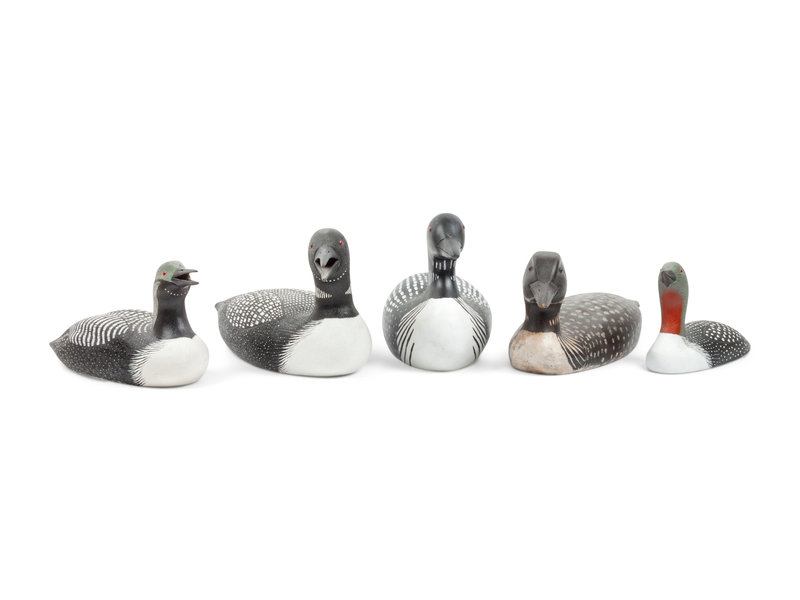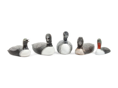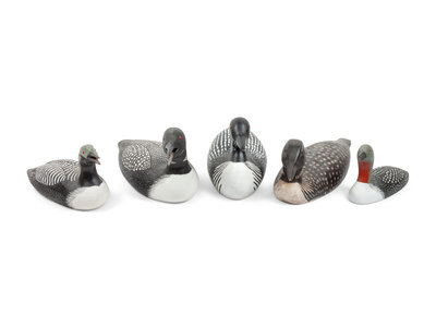 Five Carved and Polychrome Painted Loon Decoys