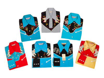 Seven H Bar C Ranchwear Children's Shirts, each embellished with colorful decals and embroidery