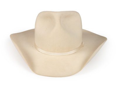 includes a Resistol straw hat (size 7), a a black fedora from O'Farrel Hat Co. (size 7 1/4), a Stetson beaver hat (size 6 7/8) and a custom made Resistol felt hat (size 7, in a custom hand tooled leather case.