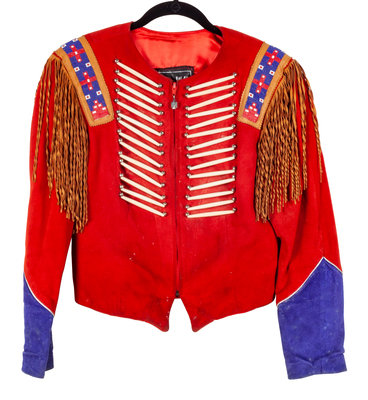 Women's Red Leather Beaded Jacket with Fringe, by Patricia Wolf, Texas, size 8
