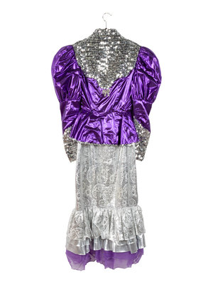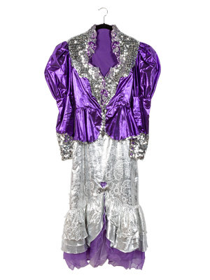 together with a custom-made purple and silver riding costume