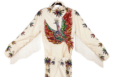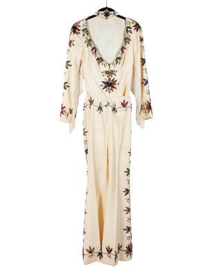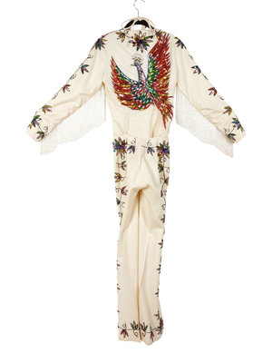 Off-white Women's Nudie-style Suit with Rhinestone and Sequin Floral Embellishments