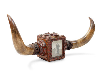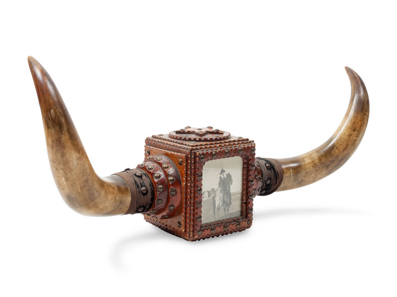 Longhorn Mount With Decorative Tooled Leather Photo Box
