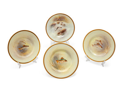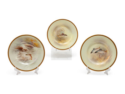 Seventeen Hand Painted Royal Doulton Fish Plates