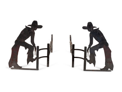 Pair of Cowboy Motif Andirons
