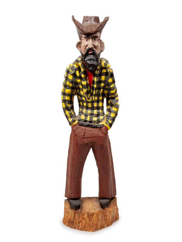 Carved Wood and Polychrome Painted Cowboy Sculpture