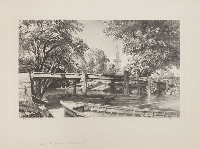 A group of four prints (Along the Delaware, New Hope, Pennsylvania, 1949; Cat Boat, Ogunquit, Maine, 1951; Demonstration print printed at Albright Gallery, Buffalo NY, (Rockport Massachussetts), 1939; Title not known)