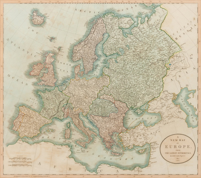 Three Historic Maps: New Map of Europe from The Latest Authorities, 1811, Delaware from the Belt Authorities, 1796, North Carolina published by J.H. Colton & Co.,