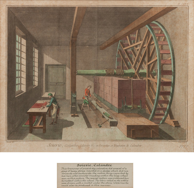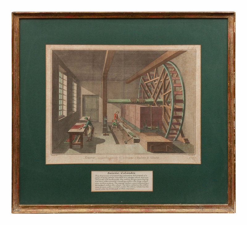 includes Teinture de Gobelins, Soierie, Calandre and Teinturier de Riviere. Each engraving includes a descriptive caption added to the framing. Printed Benard Fecit in the margin.
