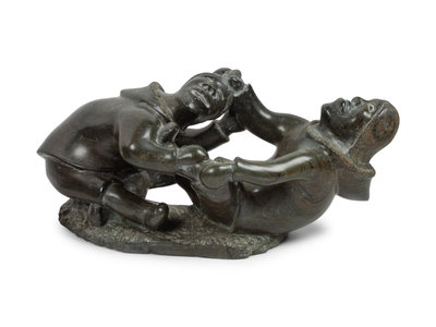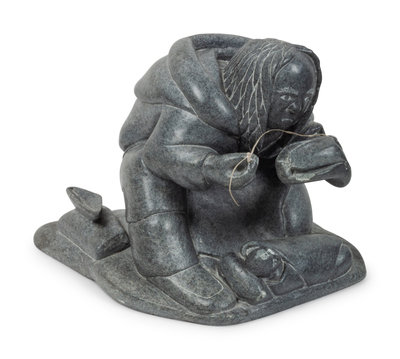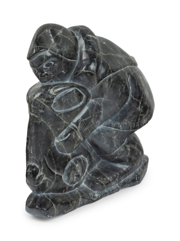 Includes a carving of a woman sewing, signed on underside Johnny Kaka. The other two carvings are marked illegibly on the underside.