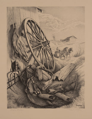 A group of three prints (Evening Chores; Posting the Letter; Thief in the Corn)