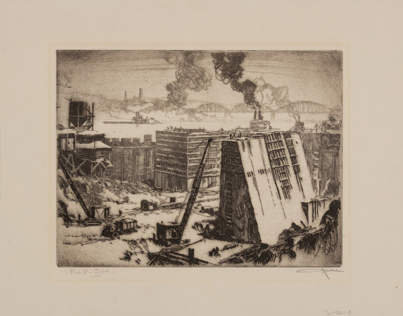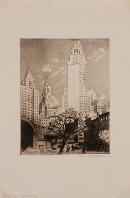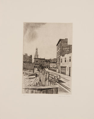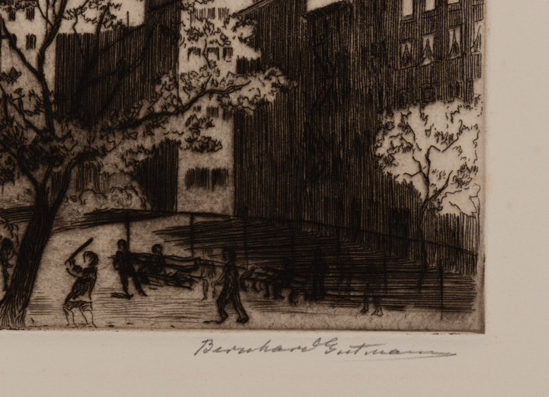 A group of four American prints (Otto Kuhler, No 7 Sp; Armin Landeck, Excavation Site Manhattan; Betty Waldo Parish, City Landscape; Bernard Gutmann, Fairy Tower NYC Downtown)