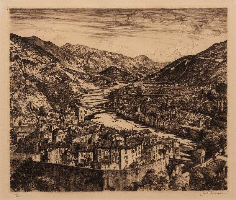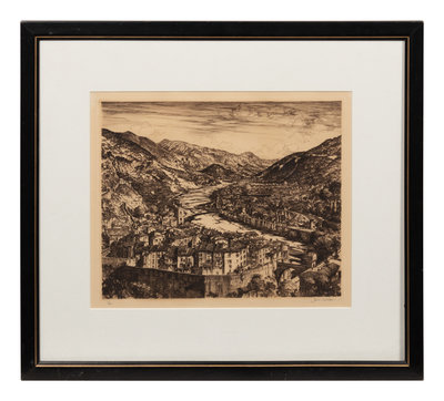 A group of three American prints (Aaron Bohrod, Summertime; Syd Browne, Along the Canal; Samuel Chamberlain, Valley of the Var)