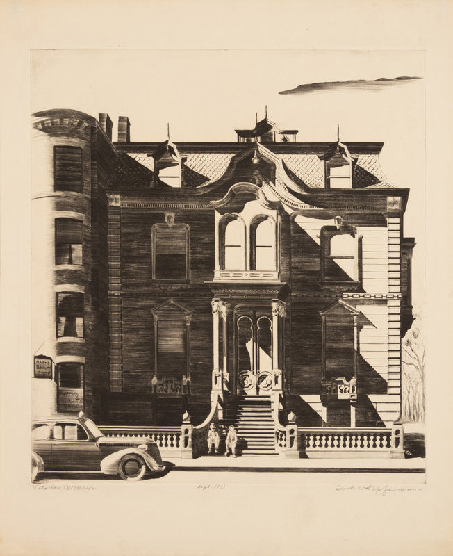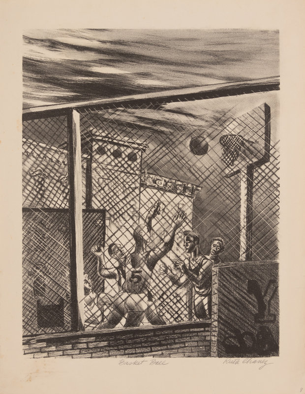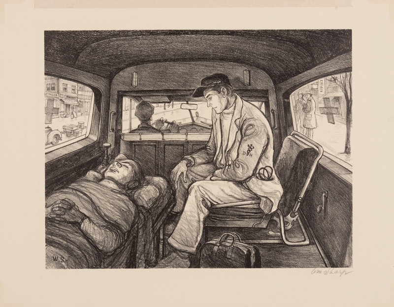 A group of six American prints (Ruth Chaney, Basketball; Maxim Gottlieb, The Village Thief; John Gregory, Cortez Street, Boston; Lawrence Kupferman, Victorian Mansion; Reginald Marsh, Star Burlesque; William Sharpe, Ambulance)