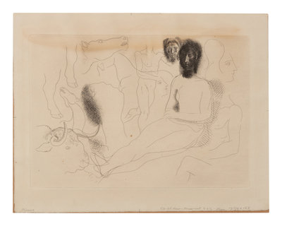 Nu assis entouré d'esquisses de bêtes et d'hommes (from Le chef d'oeuvre inconnu)