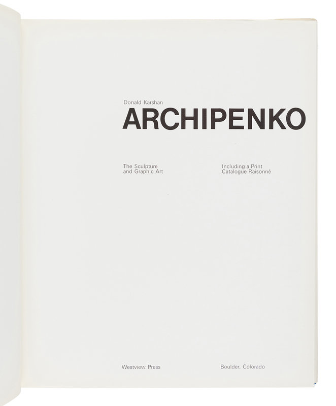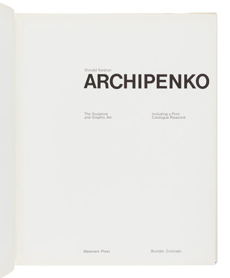 [ARCHIPENKO, Alexander (1817-1964)]. KARSHAN, Donald. Archipenko: The Sculpture and Graphic Art. Including a Print Catalogue Raisonné. Boulder, CO: Westview Press, 1975.