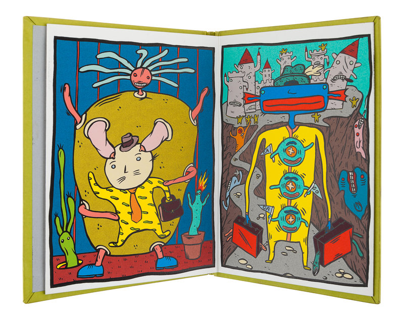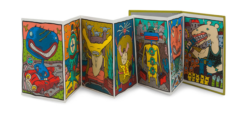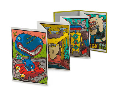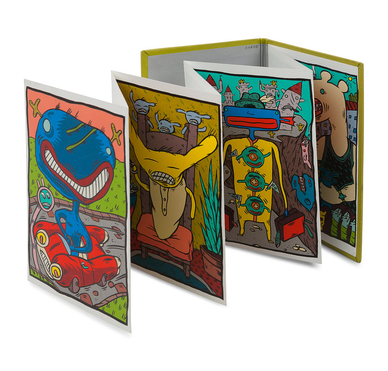 5 1/8 x 7 1/8 inches. 7 serigraphs in accordion fold. Original lime green printed boards (very minor separations to joints). LIMITED EDITION, number 155 of 200 copies SIGNED BY JISSÉ of a total edition of 250 copies.