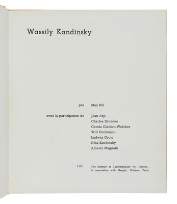 [KANDINSKY, Wassily (1866-1944)]. BILL, Max. Wassily Kandinsky. Paris: Maeght Editeur, 1951.