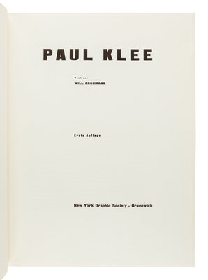 [KLEE, Paul (1879-1940)]. GROHMANN, Will. Paul Klee. Greenwich, CT. New York Graphic Society, 1958.