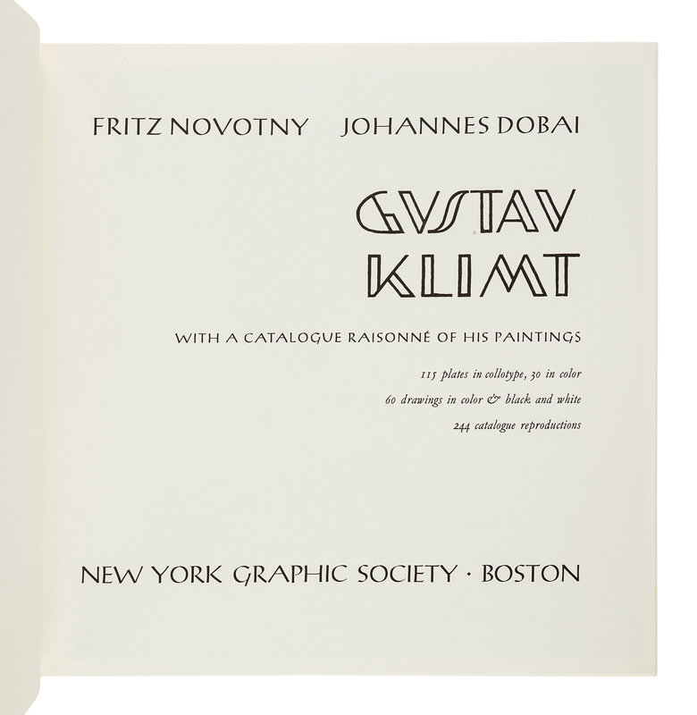 [KLIMT, Gustav (1862-1918)]. NOVOTNY, Fritz. Gustav Klimt: With a Catalogue Raisonné of His Paintings. Boston: New York Graphic Society, 1975.