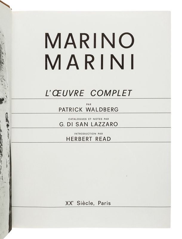 [MARINI, Marino (1901-1980)]. WALDBERG, Patrick. Marino Marini: L’Oeuvre Complet. Paris: XXe Siécle, 1970.