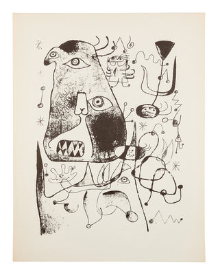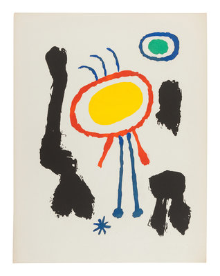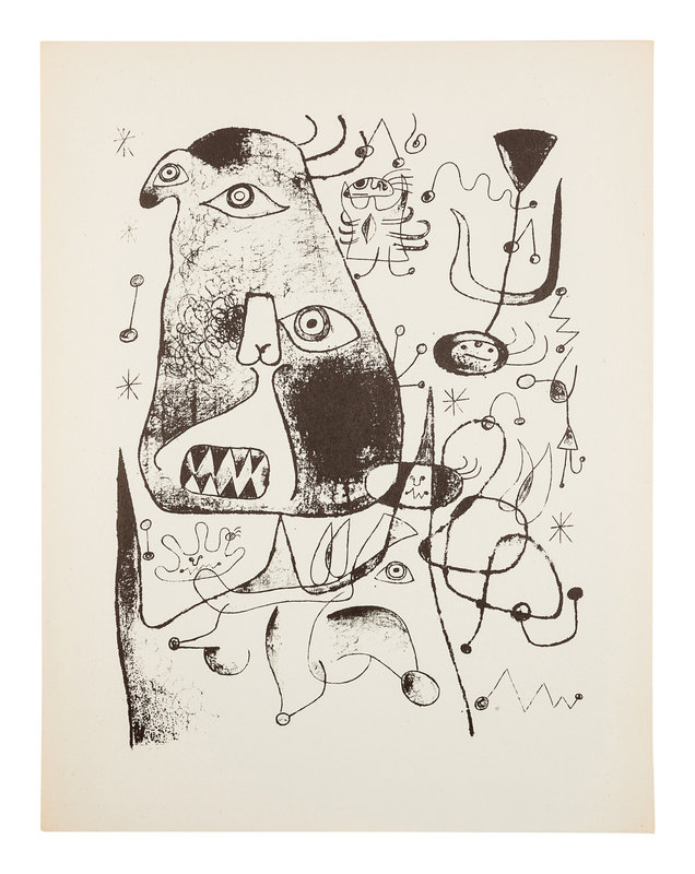 8 1/2 x 11 inches. 2 color stencils and 40 black and white plates by Miró. Text booklet and plates loose as issued in cloth folding case (spine slightly faded, review copy stamp to inner board), printed paper labels to spine and upper cover. LIMITED EDITION, one of 1,500 copies.