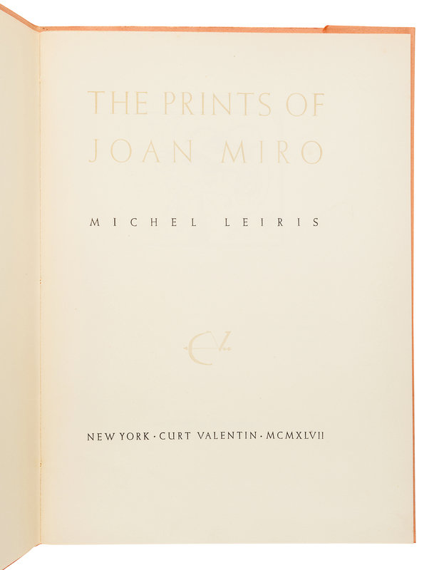 [MIRÓ, Joan (1893-1983)]. – LEIRIS, Michel (1901-1990). The Prints of Joan Miro. New York: Curt Valentin, 1947.