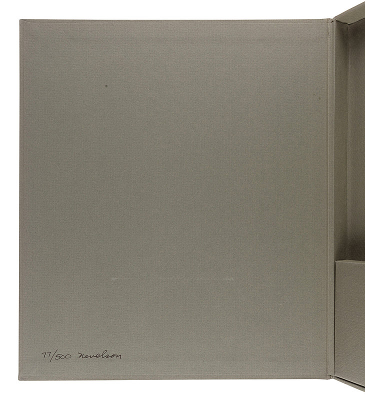 10 x 8 inches. Numerous illustrations. Cassette tape of interview with Nevelson and Barbara Diamondstein; numerous photographic plates in double-sided exhibition booklet. Original paper wrappers; housed in original board box. LIMITED EDITION, number 77 of 500 SIGNED BY NEVELSON.