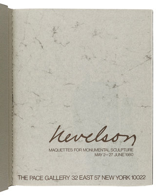 NEVELSON, Louis (1899-1988). Nevelson: Maquettes For Monumental Sculpture, May 2-27 June 1980. -- Nevelson: Wood Sculpture and Collages, May 2-27 June 1980. New York: The Pace Gallery, 1980.