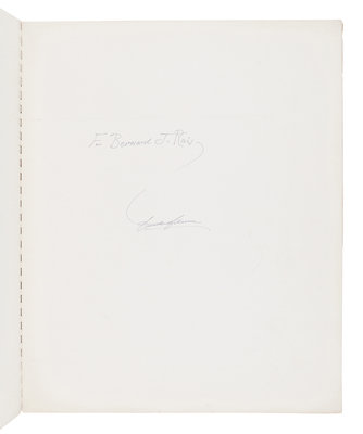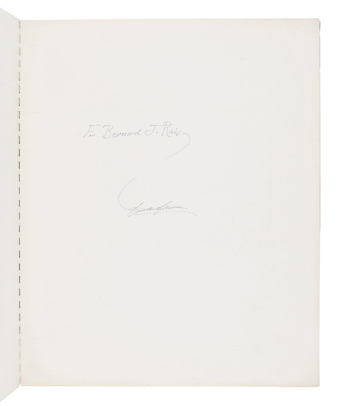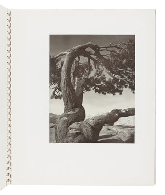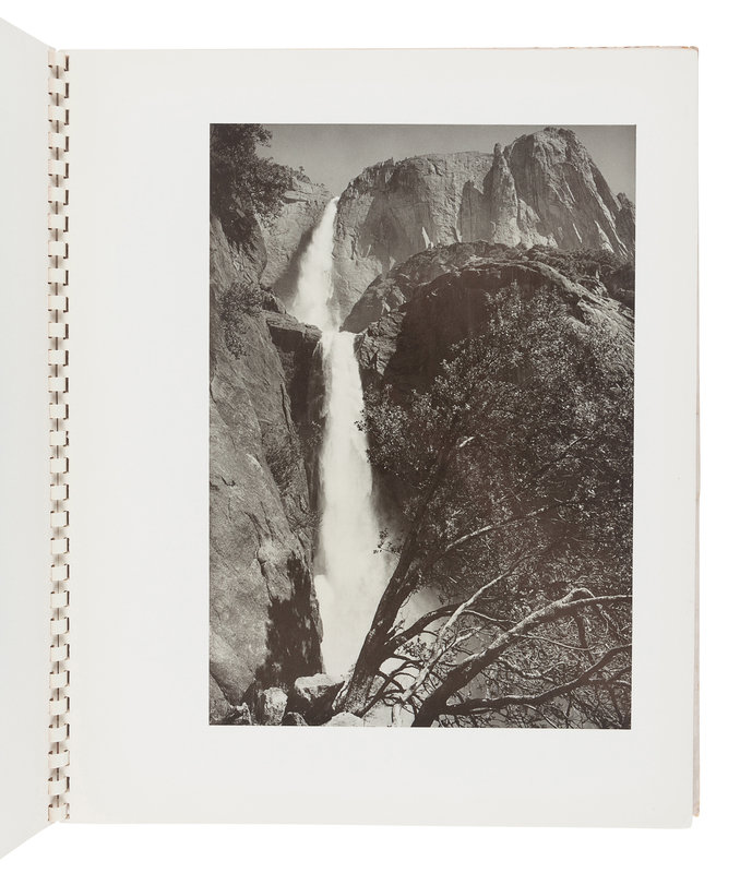 14 x 12 inches, 69pp. 30 photographs. Spiral-bound pictorial wrappers (front wrapper detached). FIRST EDITION, INSCRIBED BY ANSEL ADAMS to Bernard J. Reis. [Laid in:] Photographic reproduction “Sierra Foothills From Moro Rock, Sequoia National Park” tipped in to a printed card, a greeting from Virginia and Ansel Adams, 1948, printed on front, quote from Walt Whitman "This Moment Yearning and Thoughtful" printed on page facing photograph.