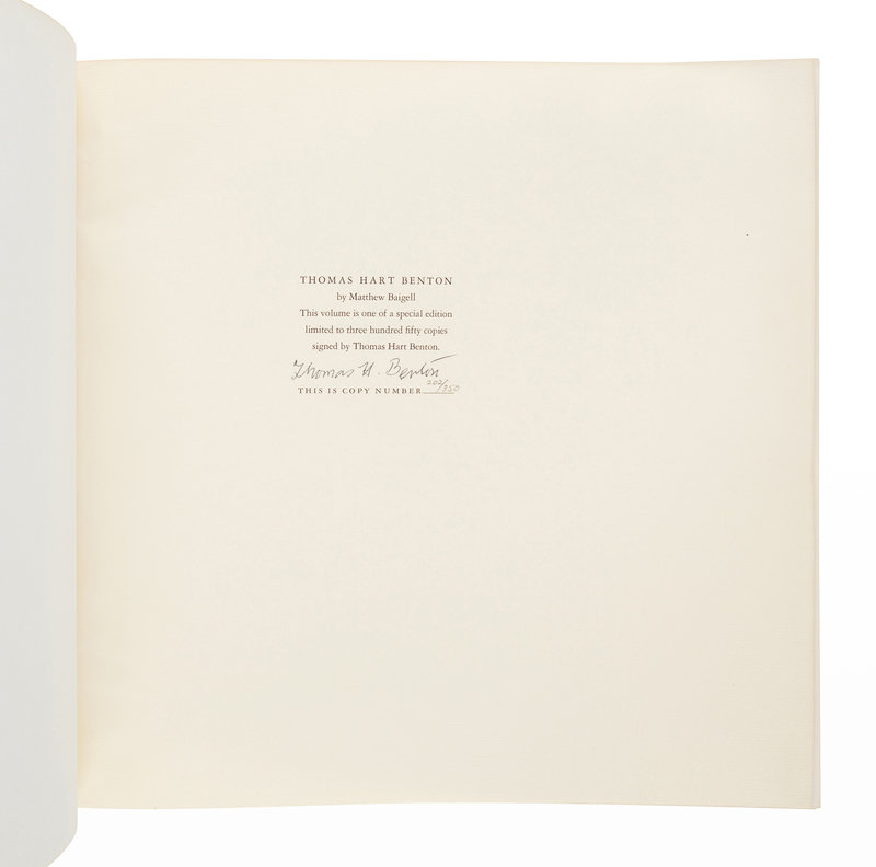 11 1/2 x 13 inches, 279pp. Numerous illustrations. Original gilt-stamped beige leather. LIMITED EDITION, number 202 of 350 copies SIGNED BY BENTON.