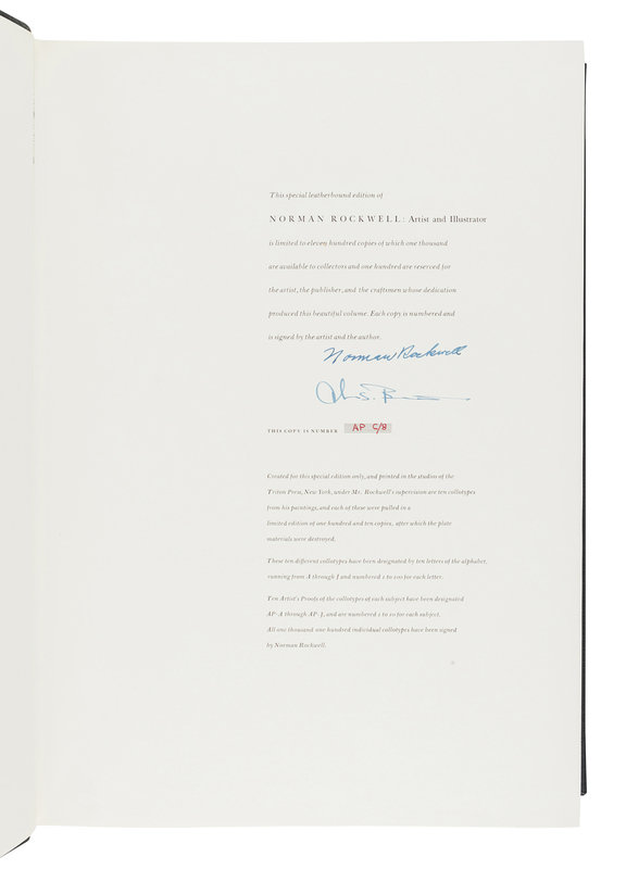 17 x 12 inches, 328pp. Numerous illustrations. Publisher’s blue leather; original slipcase. FIRST EDITION, LIMITED ISSUE, number AP C/8 of 1,100 SIGNED BY ROCKWELL AND BUECHNER.