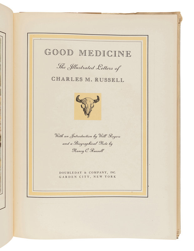 RUSSELL, Charles M. (1864-1926). Good Medicine: The Illustrated Letters of Charles M. Russell. Garden City and New York: Doubleday & Company, Inc., 1929.